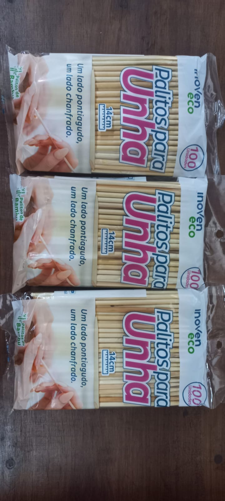 Palitos de Unhas, Manicure, Um lado Pontiagudo, 1 Lado Chanfrado, Pacote com 100 Unidades.