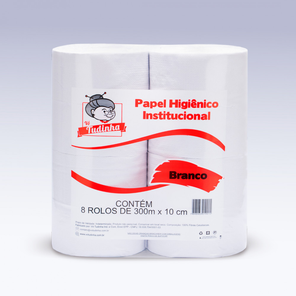 Papel Higiênico Institucional Branco Fardo com 8 Rolos de 300mt cada Rolo, Muito Utilizado em Locais de Grande Movimentação e circulação de Pessoas, Bares, Restaurantes, Eventos, Locais Publicos, entre Outros.
